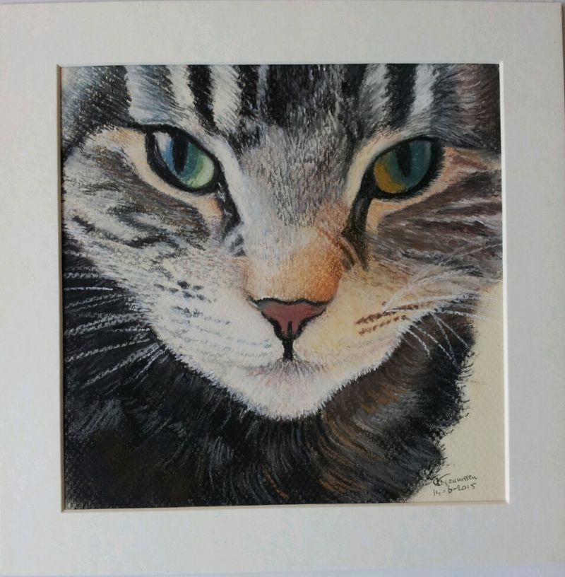 Tonny wilde een tekening van deze poes cadeau geven, maar er was een slechte foto met een stuk oor eraf.